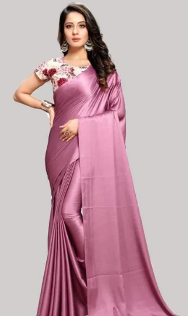 Heavy Satin Silk Plain Saree With Art Silk Digital Printed Blouse